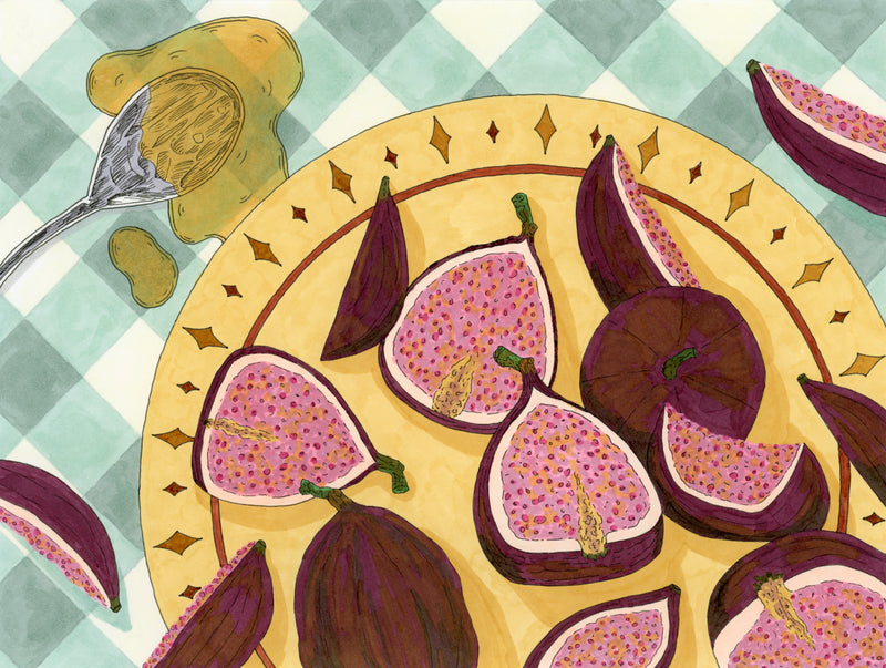 "Figs 'n Honey", pen and ink, 2024.
